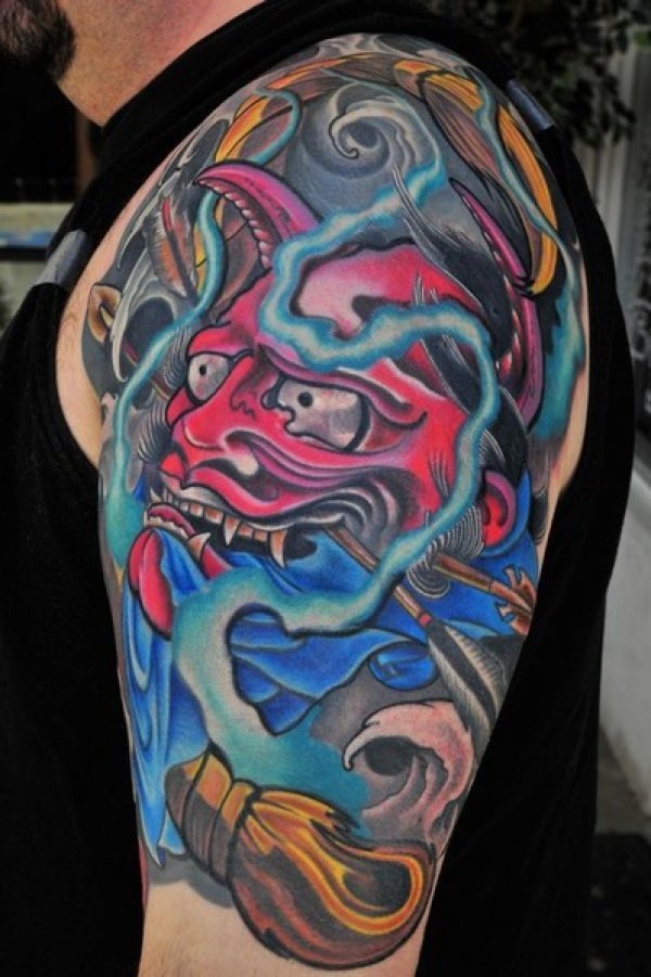 手臂一款经典很酷的欧美彩色般若纹身图案_般若纹身图案大全_纹身图吧