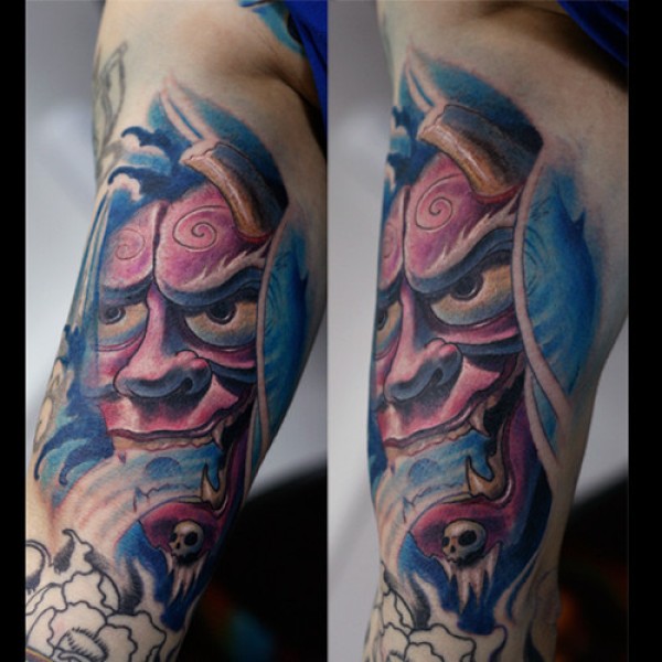 手臂彩色般若_般若纹身图案大全_纹身图吧