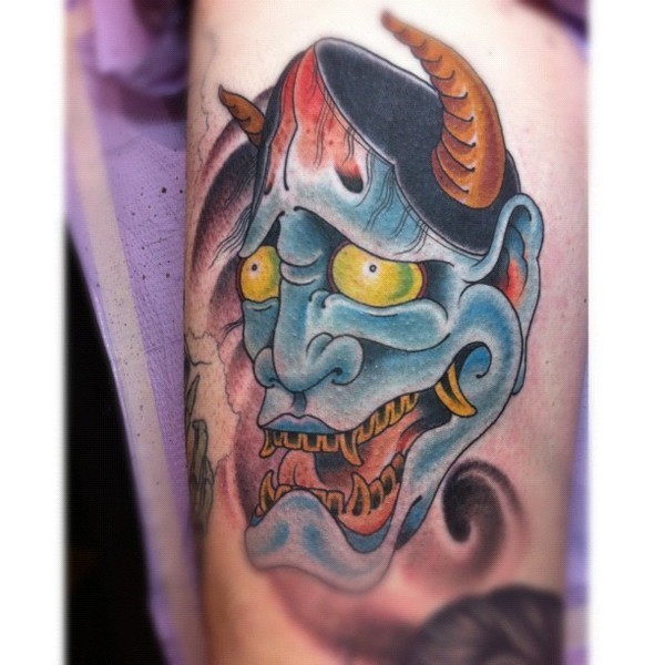 手臂一款经典很酷的欧美彩色般若纹身图案_般若纹身图案大全_纹身图吧