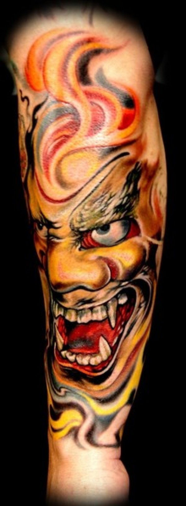 手臂一款经典很酷的欧美彩色般若纹身图案_般若纹身图案大全_纹身图吧