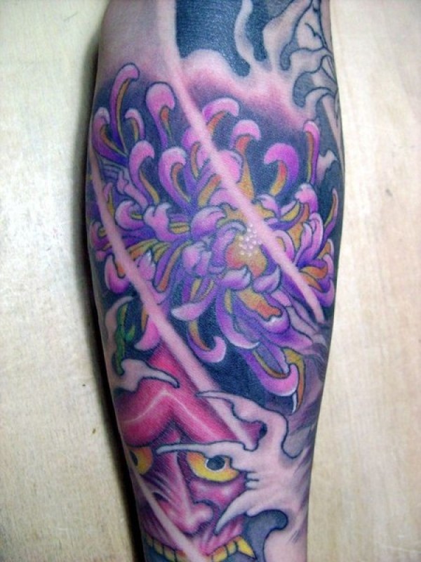 彩色菊花般若纹身_般若纹身图案大全_纹身图吧