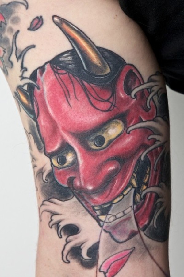 腿部帅气潮流的彩色般若纹身图案_般若纹身图案大全_纹身图吧