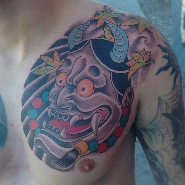 胸口彩色般若_般若纹身图案大全_纹身图吧