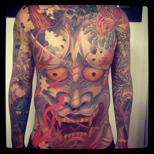 男人后肩背超酷的盔甲般若纹身图案_般若纹身图案大全_纹身图吧