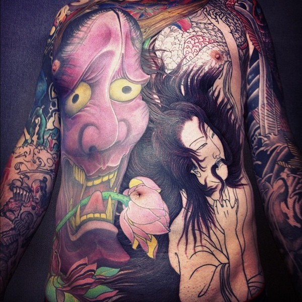 男人后肩背超酷的盔甲般若纹身图案_般若纹身图案大全_纹身图吧