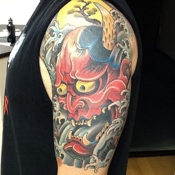 大臂般若浪花纹身_般若纹身图案大全_纹身图吧