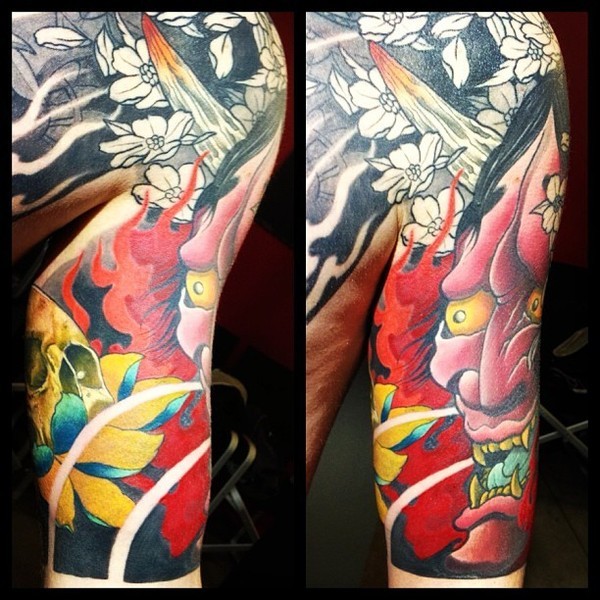 手臂一款经典很酷的欧美彩色般若纹身图案_般若纹身图案大全_纹身图吧