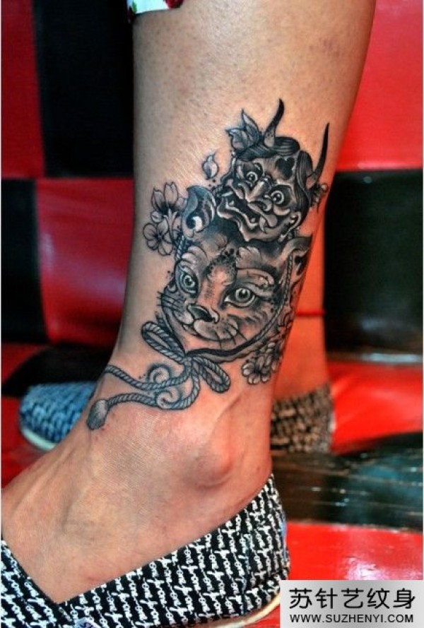 般若猫咪脚踝创意纹身_般若纹身图案大全_纹身图吧