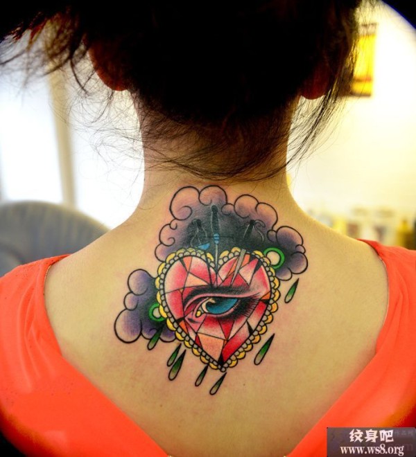 泪眼红心创意脖子纹身图案_脖子纹身图案大全_纹身图吧