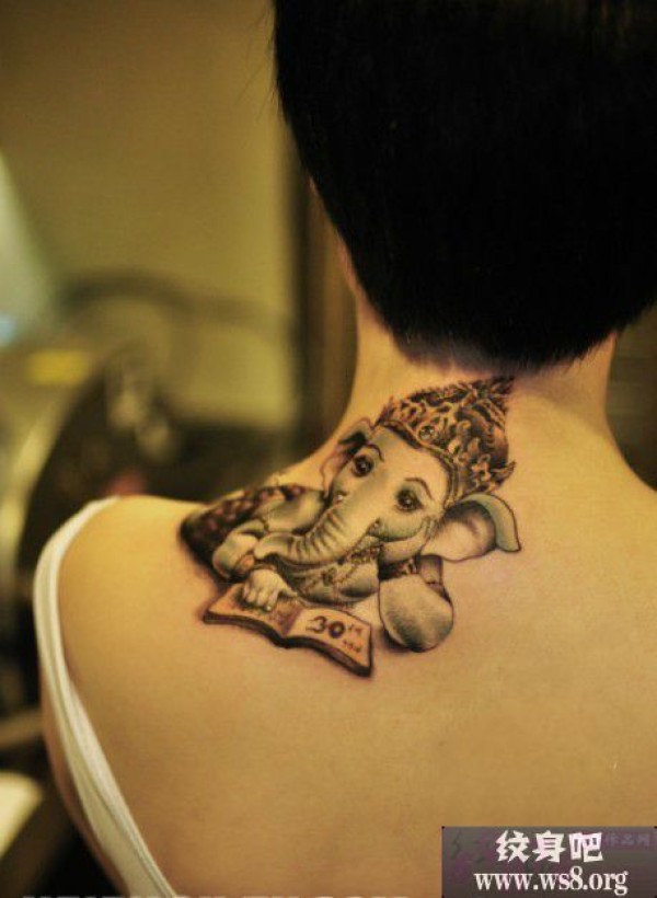 可爱萌象神脖子纹身图案_脖子纹身图案大全_纹身图吧