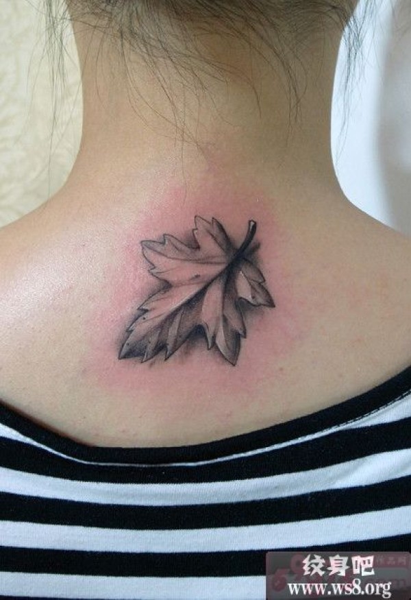女生脖子树叶个性纹身图案_脖子纹身图案大全_纹身图吧