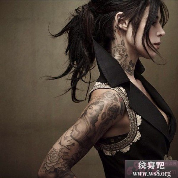 美女脖子和手臂个性刺青图案_脖子纹身图案大全_纹身图吧