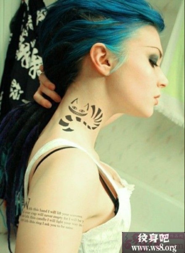 女生脖子个性另类猫咪刺图案图案_脖子纹身图案大全_纹身图吧