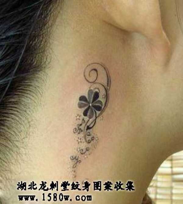 后颈四叶草纹身图_脖子纹身图案大全_纹身图吧