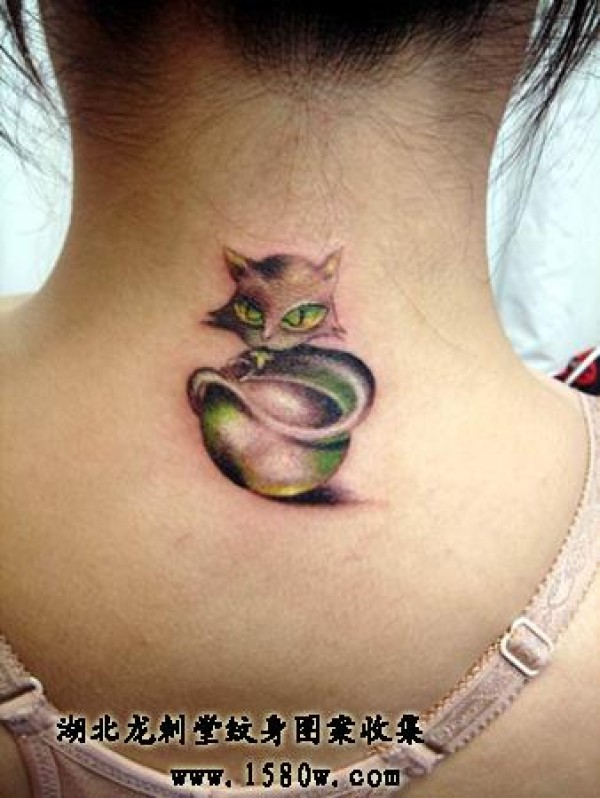 颈部纹身猫咪纹身脖子纹身_脖子纹身图案大全_纹身图吧