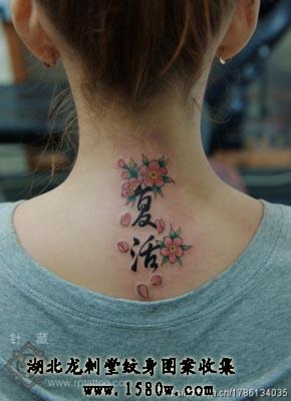 樱花纹身颈部纹身脖子纹身_脖子纹身图案大全_纹身图吧