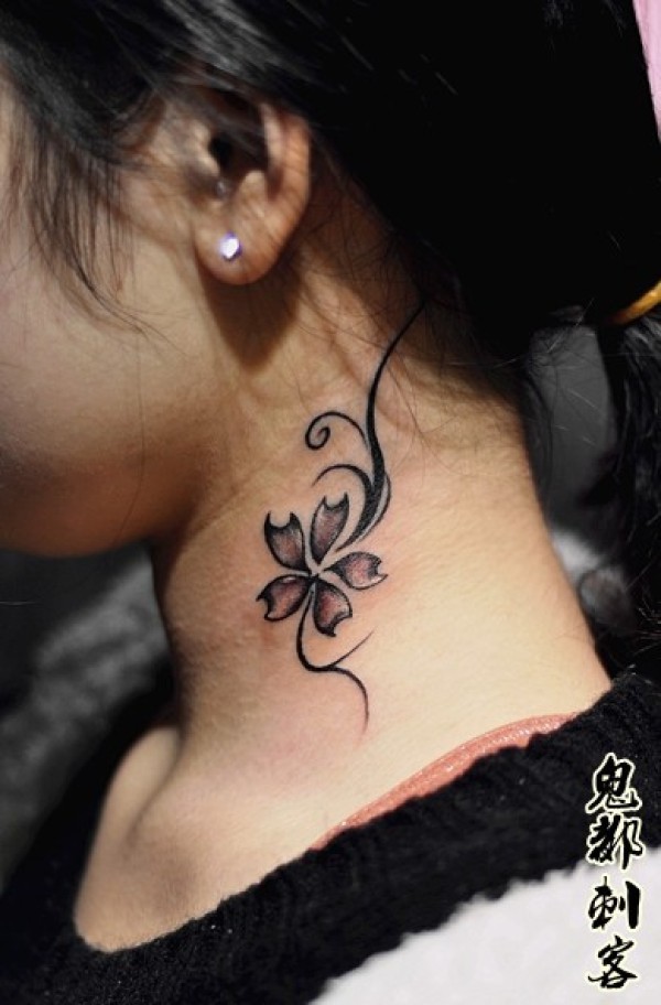 脖子花纹身_脖子纹身图案大全_纹身图吧