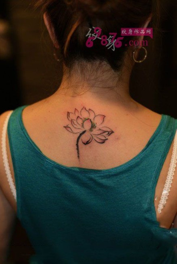 后颈小清新莲花纹身_脖子纹身图案大全_纹身图吧