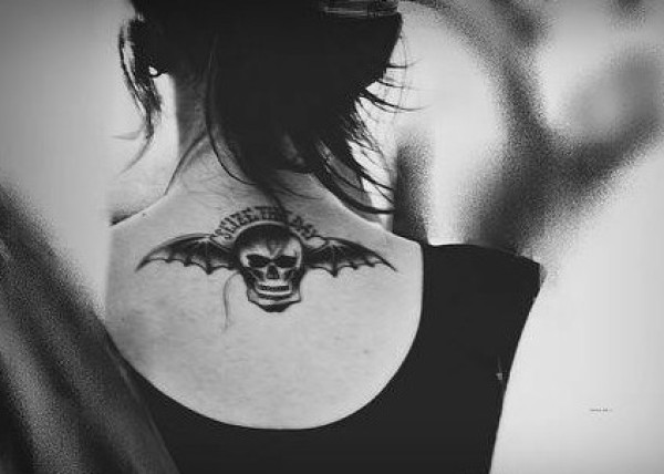 蝙蝠骷髅头_脖子纹身图案大全_纹身图吧