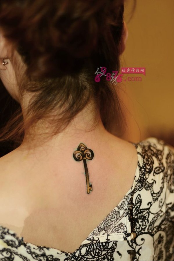 女孩脖子钥匙创意纹身_脖子纹身图案大全_纹身图吧