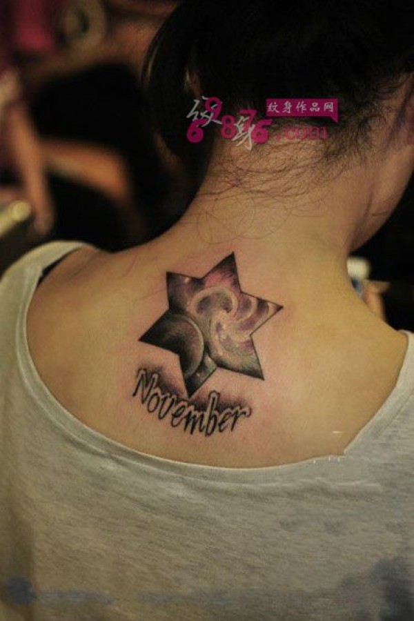 绚烂星空五角星后颈纹身_脖子纹身图案大全_纹身图吧