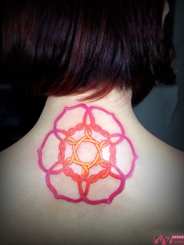 后颈红色平安符纹身图_脖子纹身图案大全_纹身图吧