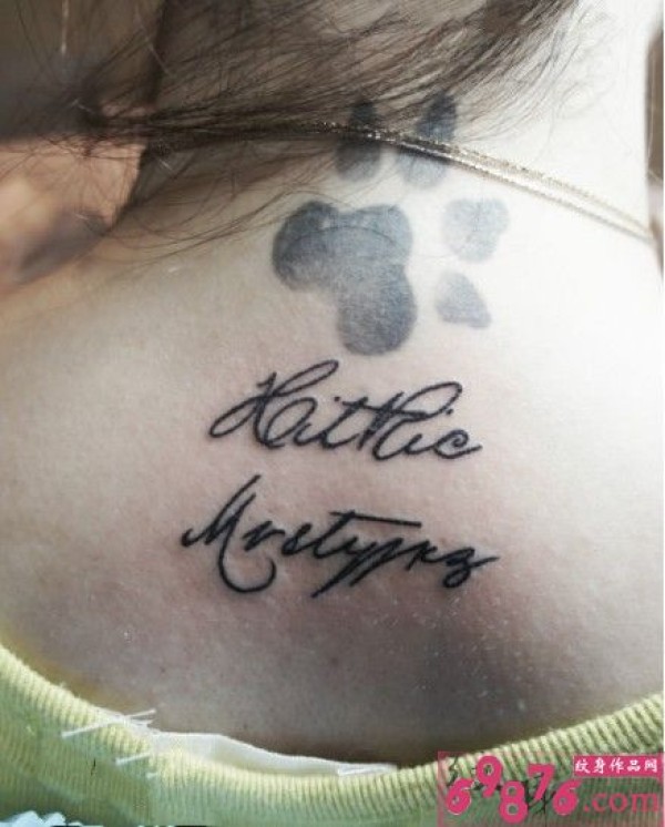 后颈可爱爪印英文刺青_脖子纹身图案大全_纹身图吧