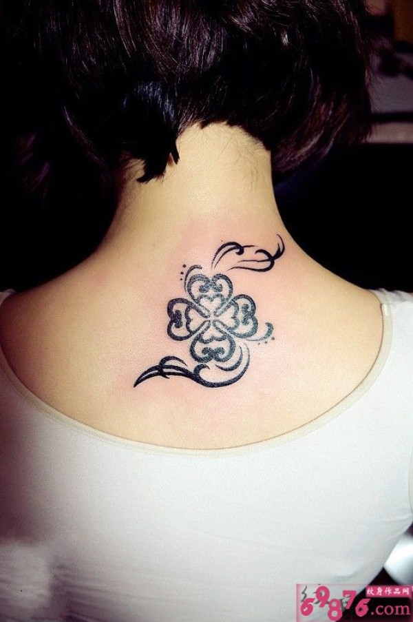 后颈四叶草纹身图_脖子纹身图案大全_纹身图吧