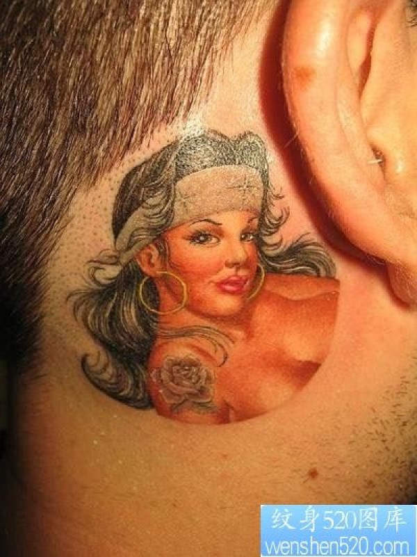 一款耳后女郎纹身图案_脖子纹身图案大全_纹身图吧