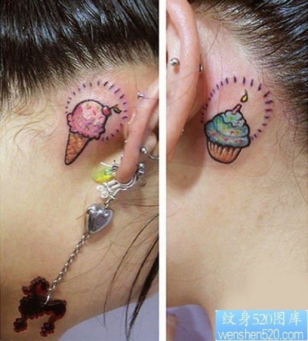 耳后冰淇淋纹身图案_脖子纹身图案大全_纹身图吧