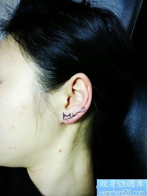 女孩子耳朵上可爱的小猫咪纹身图片_脖子纹身图案大全_纹身图吧