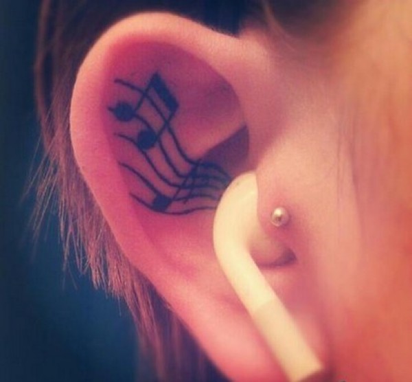 耳郭上的音符纹身图不得不佩服这些大胆的纹身_脖子纹身图案大全_纹身图吧