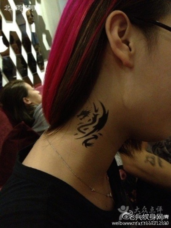 女生脖子处时尚很酷的图腾龙纹身图案_脖子纹身图案大全_纹身图吧