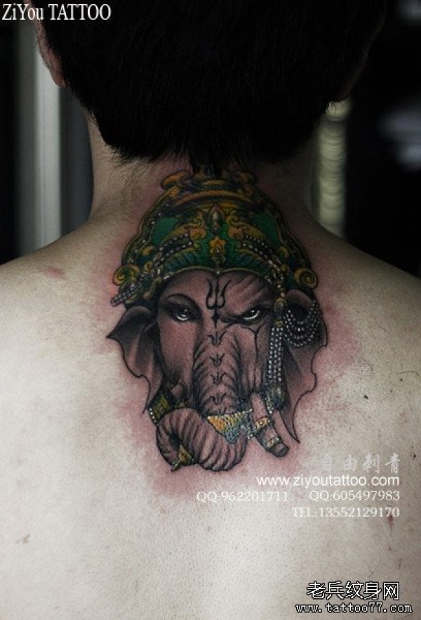 男生脖子处时尚很酷的象神纹身图案_脖子纹身图案大全_纹身图吧