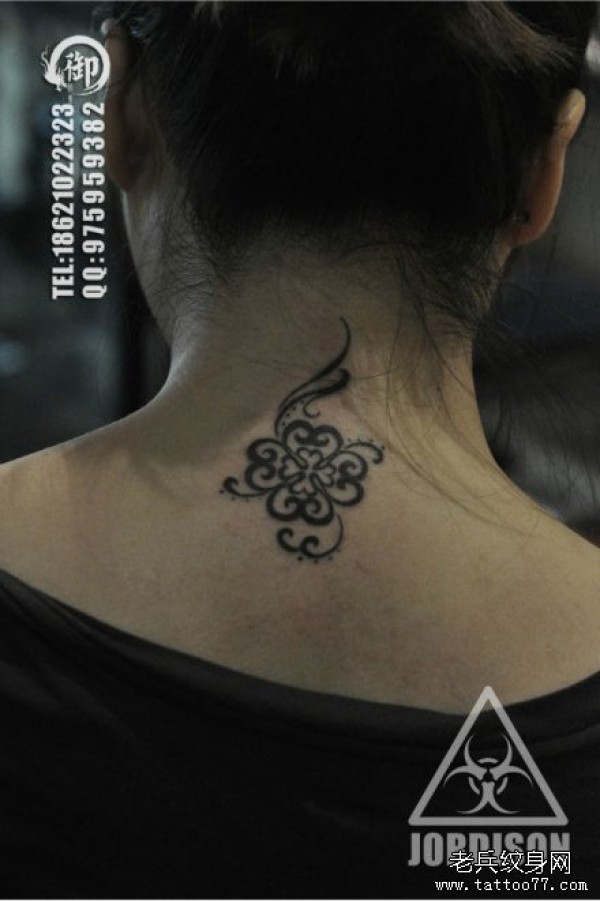 女生后脖子时尚潮流的图腾四叶草纹身图案_脖子纹身图案大全_纹身图吧