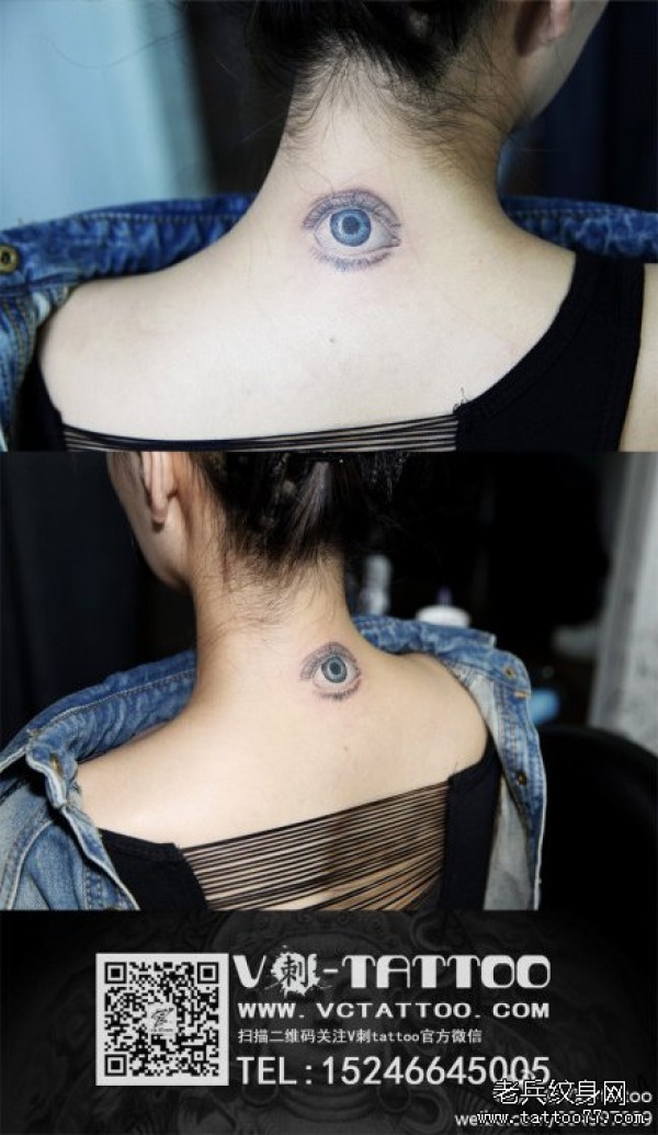 女生后脖子时尚很酷的眼睛纹身图案_脖子纹身图案大全_纹身图吧
