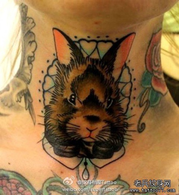 脖子处很酷时尚的兔子纹身图案_脖子纹身图案大全_纹身图吧