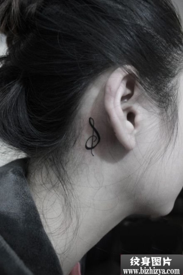 唯美耳后小音符纹身图案图片_脖子纹身图案大全_纹身图吧