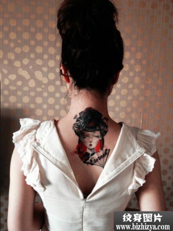 艺妓美女时尚脖子纹身图案图片_脖子纹身图案大全_纹身图吧