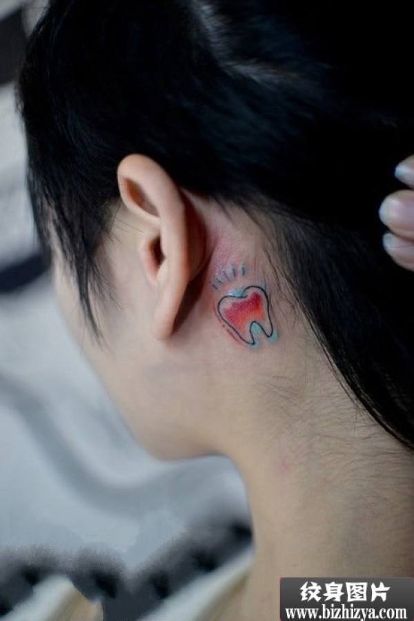 耳后创意的小牙齿图案图片_脖子纹身图案大全_纹身图吧