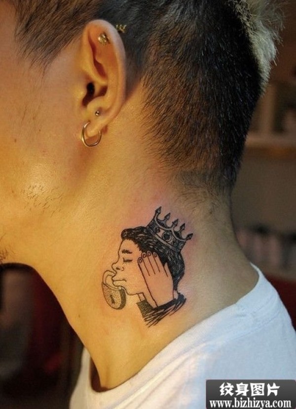 男生脖子被锁国王纹身图图案图片_脖子纹身图案大全_纹身图吧