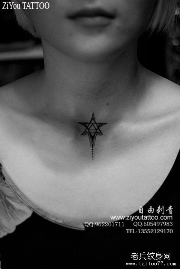 女生脖子处时尚经典的五角星纹身图案_脖子纹身图案大全_纹身图吧