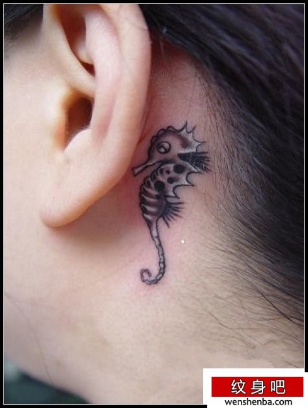 耳朵后面的小海马纹身图案_脖子纹身图案大全_纹身图吧