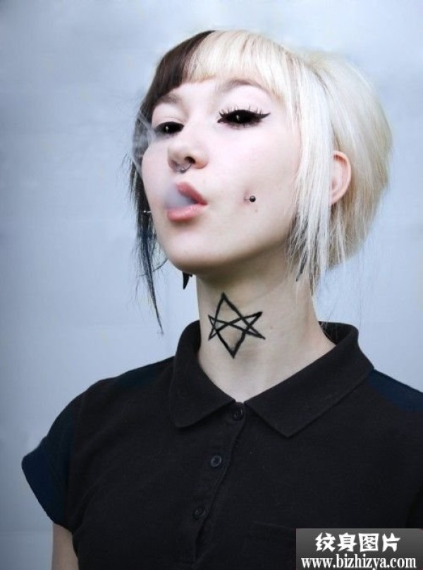 个性潮女脖子星星图腾图案图片_脖子纹身图案大全_纹身图吧