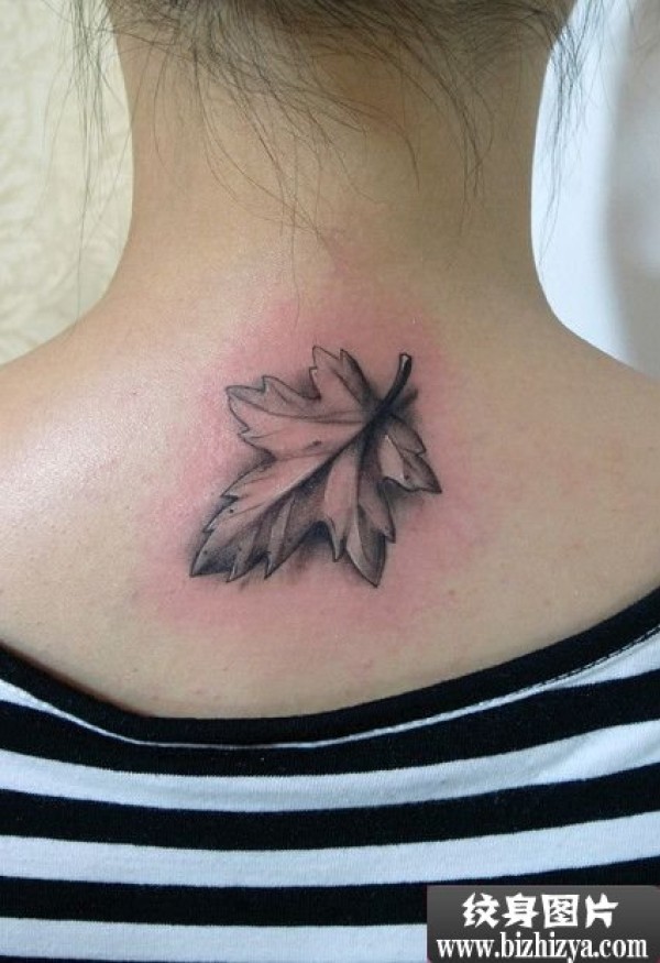 女生脖子树叶个性纹身图案图片_脖子纹身图案大全_纹身图吧