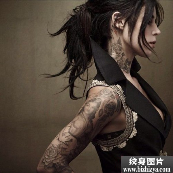 美女脖子和手臂个性纹身图案图片_脖子纹身图案大全_纹身图吧