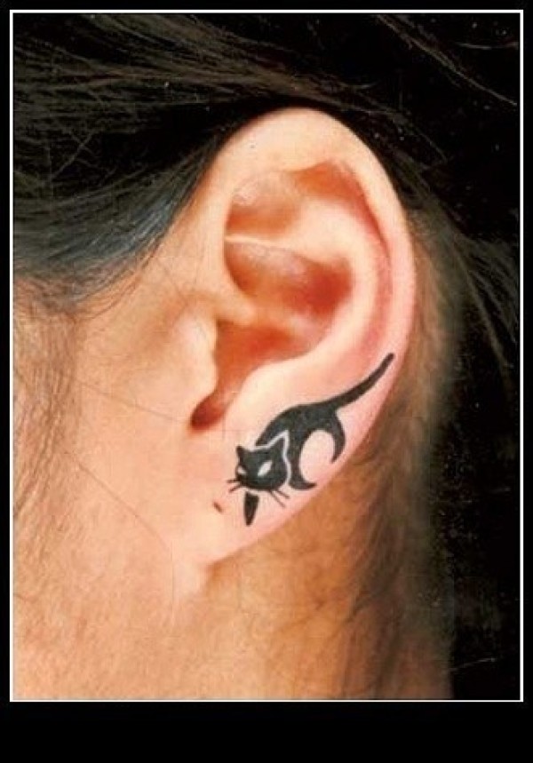 一款个性时尚的耳朵猫咪纹身图案_脖子纹身图案大全_纹身图吧