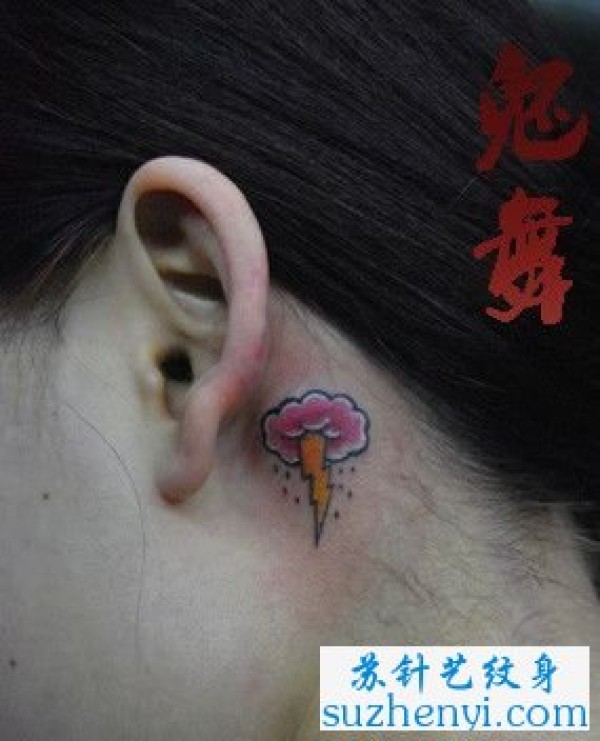 耳部乌云与小闪电纹身_脖子纹身图案大全_纹身图吧
