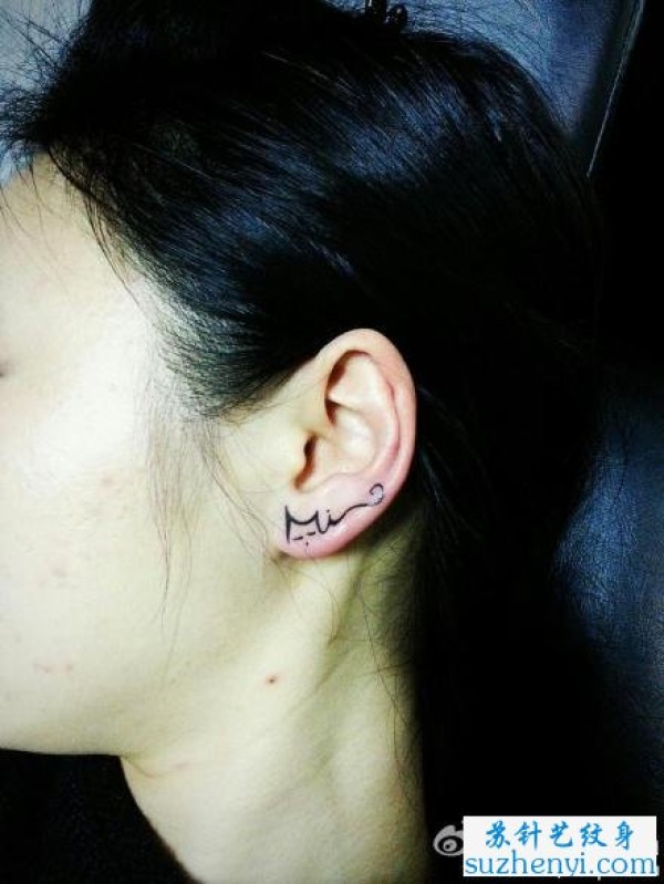 耳朵上的小猫咪纹身_脖子纹身图案大全_纹身图吧