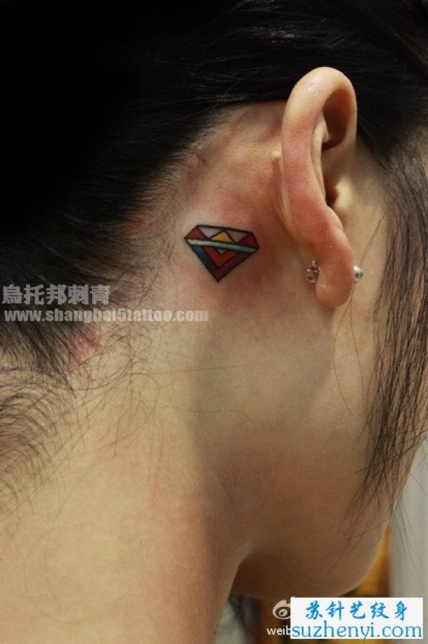 耳部彩色小钻石纹身_脖子纹身图案大全_纹身图吧